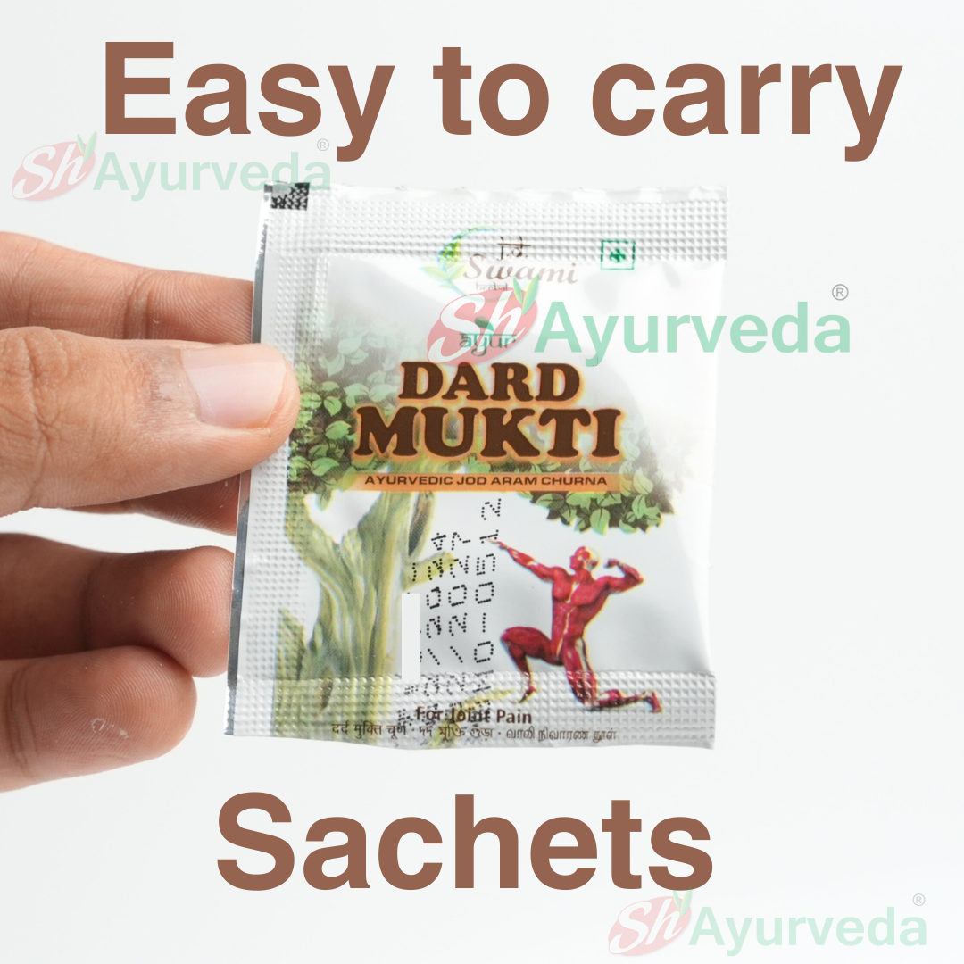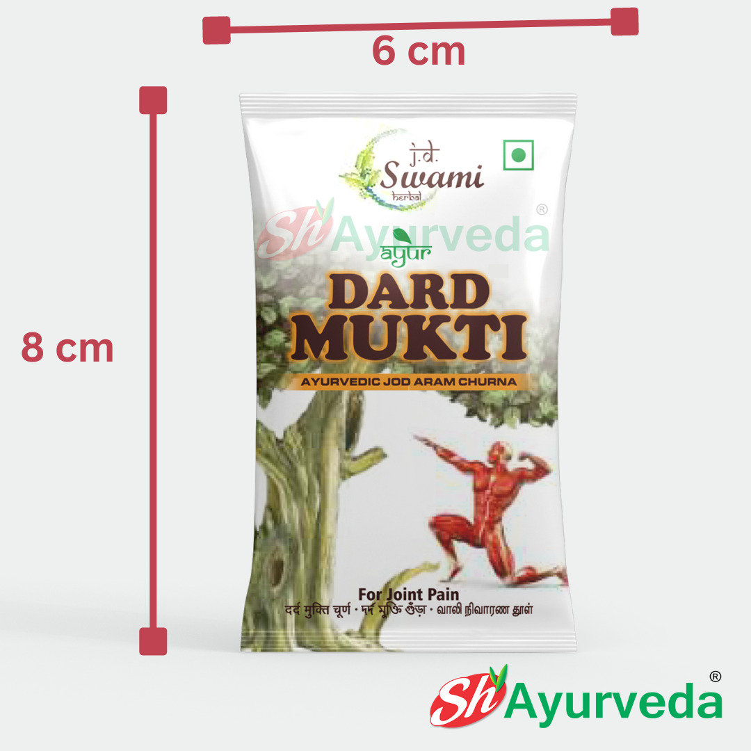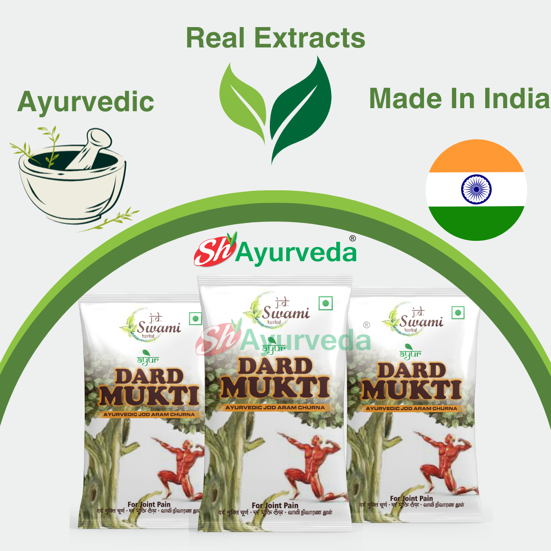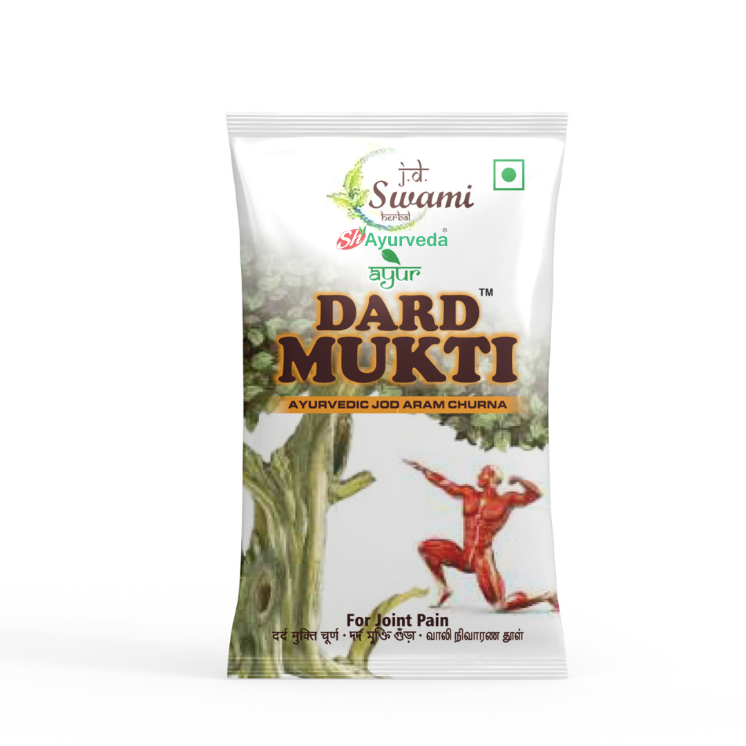 Dard Mukti powder (churna) repairs and synthesizes joint cartilage, which further improves joint health. Additionally containing herbal ingredients, this Joint Pain Powder, Ayurvedic Powders is natural and very much safe to consume .Our bestselling joint pain reliever. Uses the strongest herbal extracts from around the world. Potent varieties of Yellow dock, Slippery elm, Juniper, Buffaloberry, Poke, Celery seeds ,Osha root and Eucalyptus and much more. So, bring home this 100 % pure ayurvedic JD Swami Herbal Ayurveda DARD MUKTI POWDER for a natural solution to your bone and joint problems