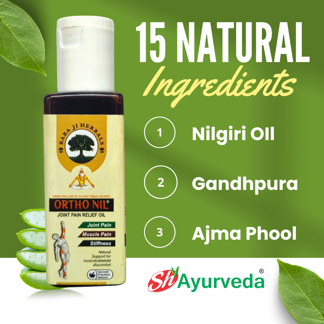 Natural & Ayurvedic: Formulated with a potent blend of 14 key herbal oils, Ortho Nil Oil is a completely natural solution for pain, free from harsh chemicals.