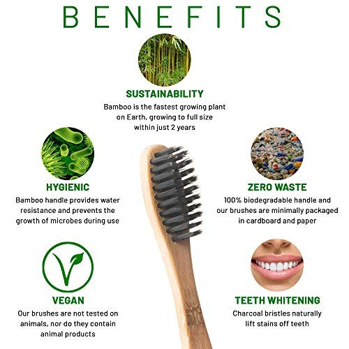 Some charcoal toothbrushes have a plastic/rubber handle with charcoal-infused bristles, whilst others have a wooden, normally bamboo, handle.