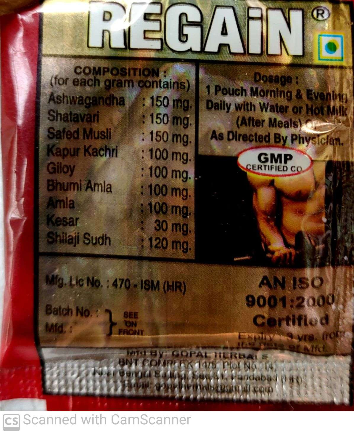 Regain Powder is a ayurvedic medicine of Gopal Herbal co. One strip contain 30 pouches. Gopal Herbal Regain Powder is one of the best medicine for weight gain, healthy liver, blood creation, gain immunity. Introduction. Regain Powder keeps you healthy and fit in your daily life.